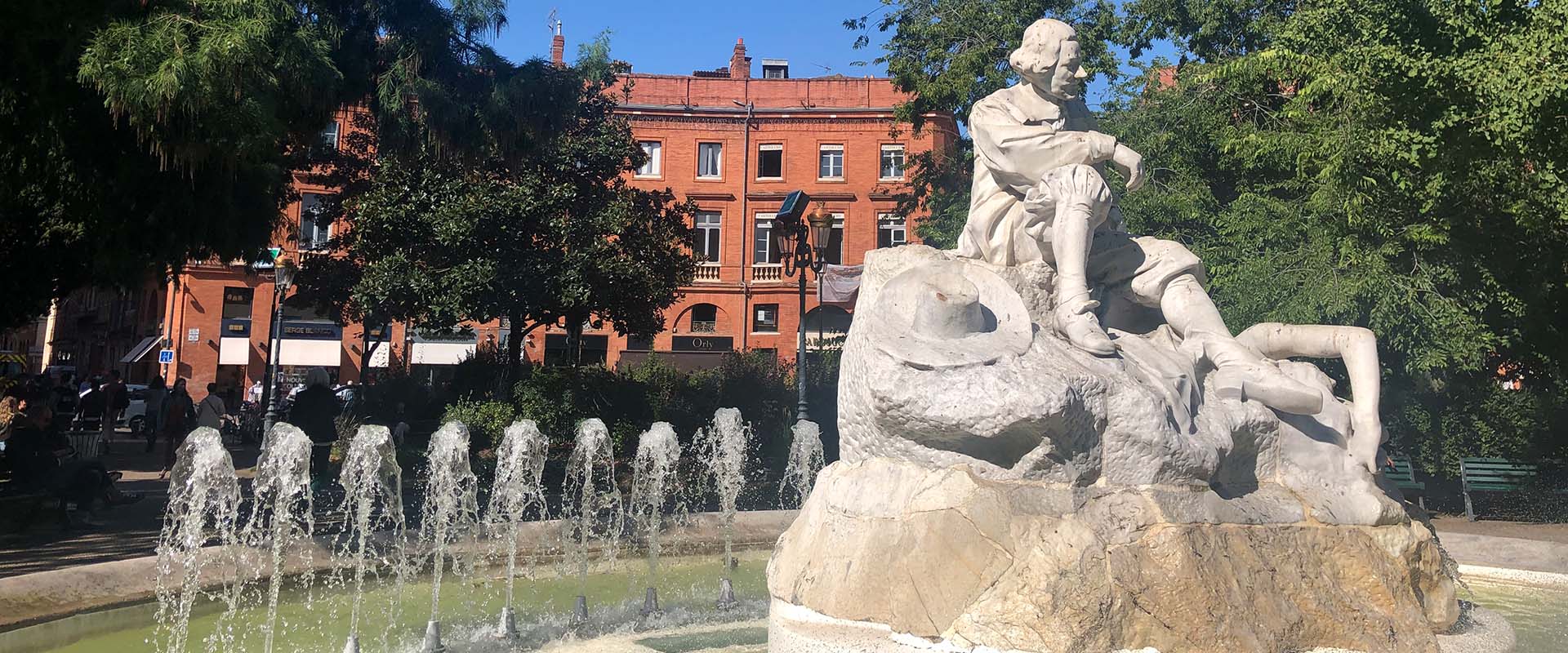 Installé ici en 1908 plusieurs années après avoir été sculpté par Falguières et Mercié, Goudouli est un poète occitan du 17ème siècle Son visage et sa pose semblent l’avoir figé dans une perpétuelle réflexion.