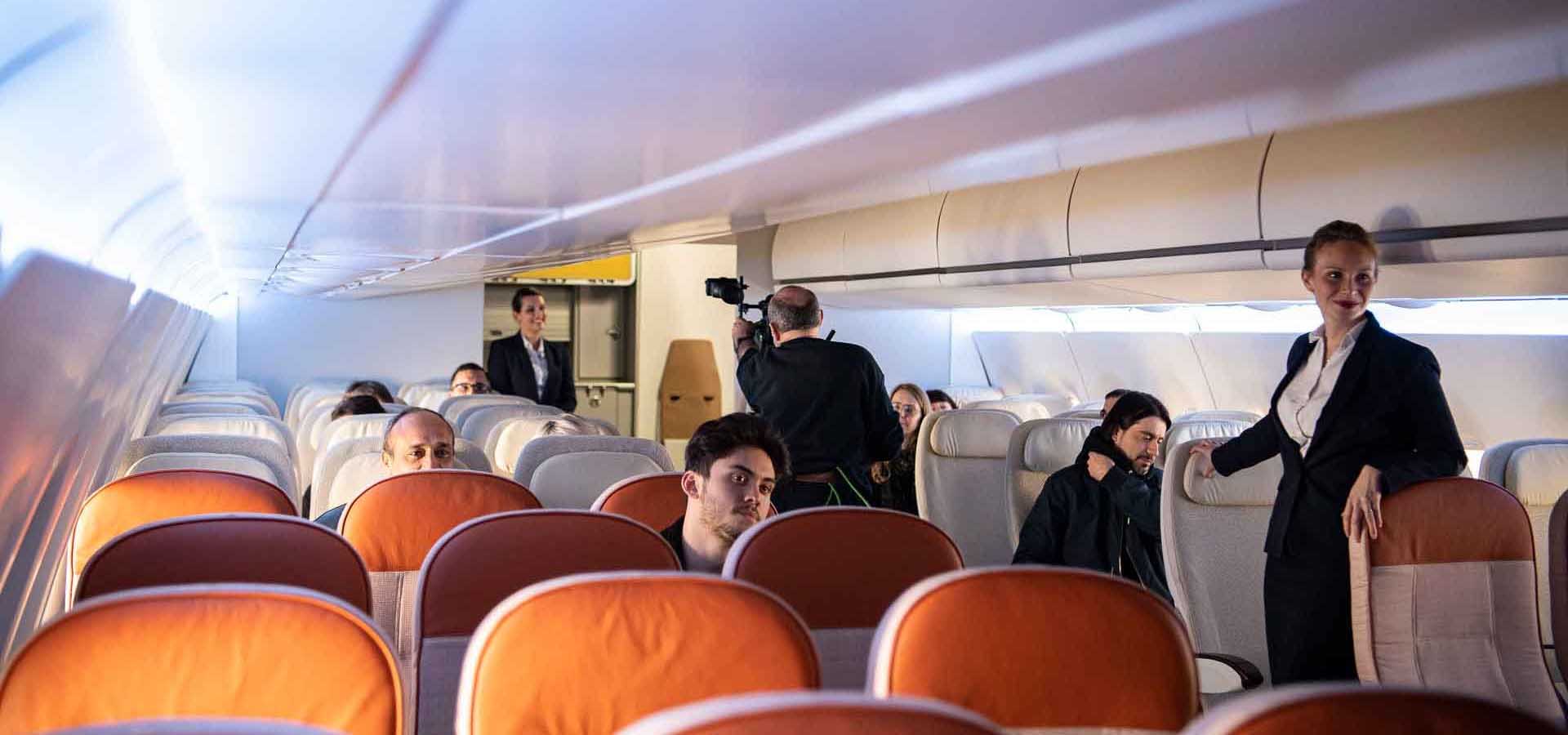 Les sièges peuvent être disposés en configuration éco ou business, sur une ou plusieurs rangées (jusqu’à 12 rangées). La cabine peut être divisée en 1 ou 2 couloirs.
