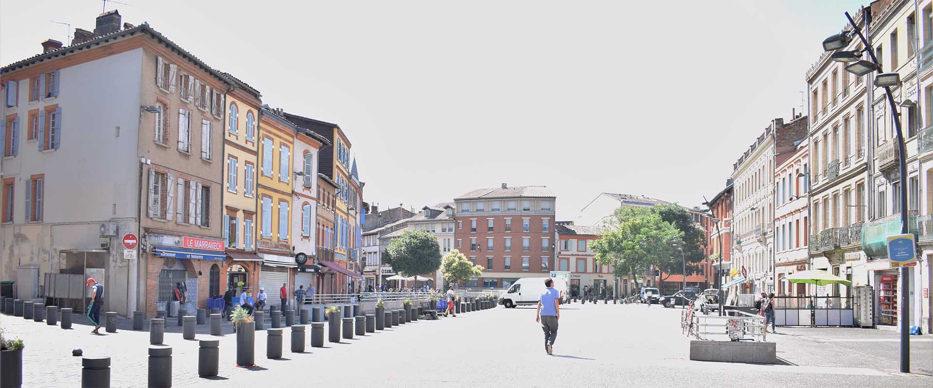 Ancienne porte nord du faubourg Saint-Sernin, le quartier longe les boulevards (Arcole et Lascrosses) et ouvre sur le quartier des affaires et le Canal du Midi.