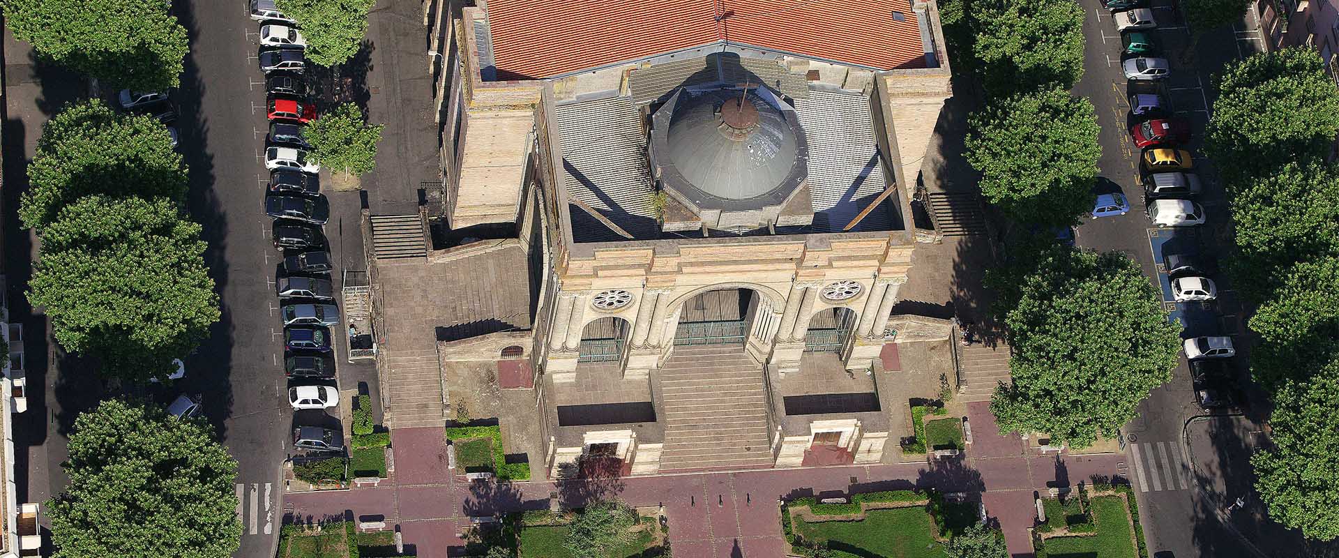 Cette église imposante au style néo-gothique, roman et byzantin lui donne un aspect austère.