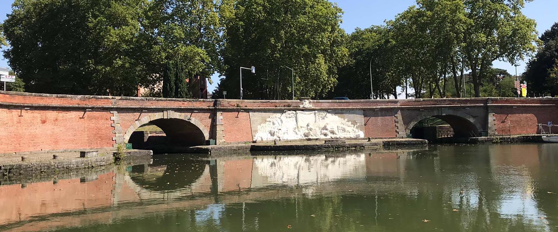 La sculpture comprise entre les arches du Canal du Midi et du Canal de Brienne est un bas-relief en marbre blanc de Carrare. Il est long de 16 mètres, haut de 5 mètres, sculpté par François Lucas. Datant de 1775, il représente une allégorie composée de plusieurs personnages.