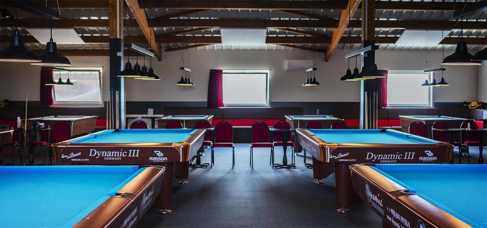 Matériel disponible : 16 billards dont 8 peuvent être déplacés si besoin, 100 chaises à disposition.