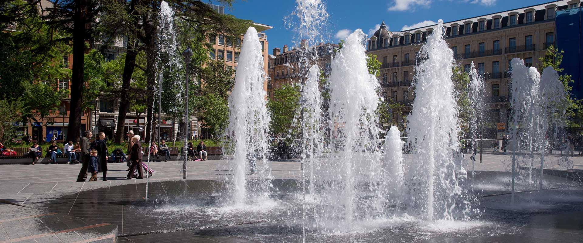 - Une fontaine à 14 jets dynamiques de 150 m2 placé dans l’axe de la statue de Nougaro et de la tour du donjon.